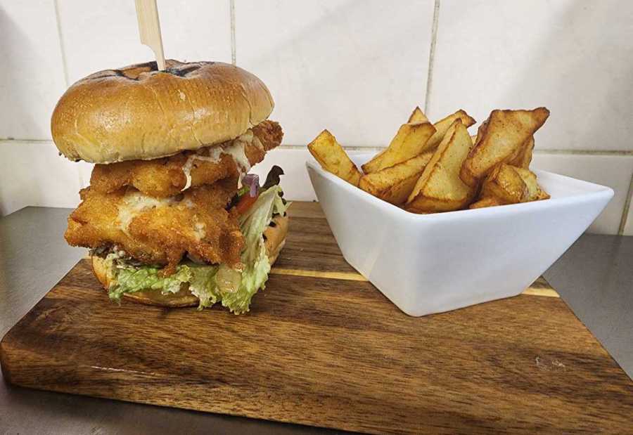 Cajun Spiced Pan-Fried Chicken Breast with Mature Cheddar Cheese Baguette £8.50
